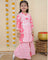 Get the perfect fusion look with this adorable Girls Kurta Sharara Set! The A-line kurta comes in a dual tone with a unique front cut designer sharara, featuring a white mirror lace on the neck and sleeves and colored fringes. Elevate your style with this trendy and playful outfit!